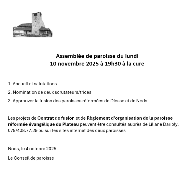 Nous vous souhaitons la bienvenue sur le site internet de la Paroisse réformée de Nods